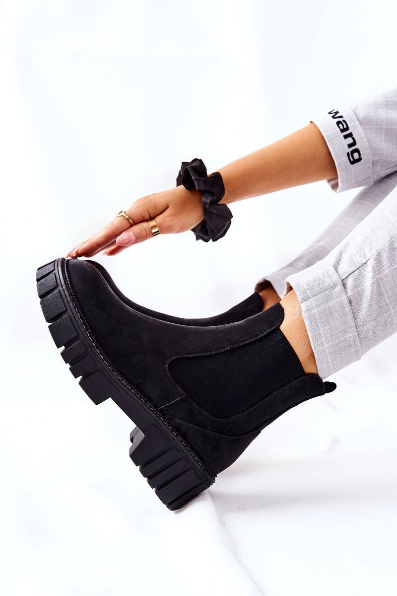 Unique boots made of ecological leather. The interior is covered with warm and nice-to-touch fur that guarantees comfort on cold days. They have an elastic material in the upper that adjusts to the leg. The solid sole adds character to these boots. Be sure to check out our whole offer of women's boots. When choosing the size, please refer to the size chart..