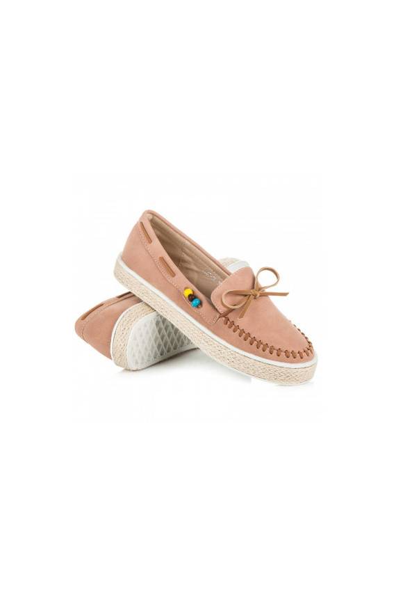 Great women's moccasins for warm, clear days! Made of pleasant to the touch eco suede. They have a stiff heel counter. At the front there are decorative, eco suede fringes with a bow. Covered, round nose. The shoes have a soft, perforated insole made of leather. Moccasins have a flexible sole made of rubber material. Perfect for work or a weekend trip with friends. A model with a universal cut, with which you can compose many styles! When choosing a size, please use the size chart.
