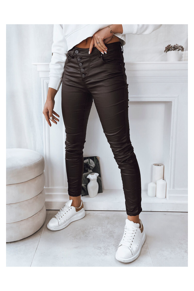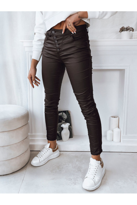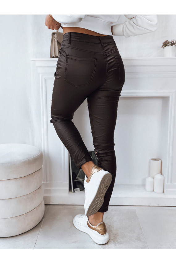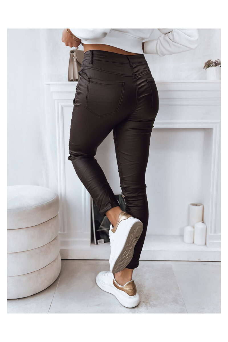 Moteriškos odos imitacijos kelnės tamsiai rudos spalvos