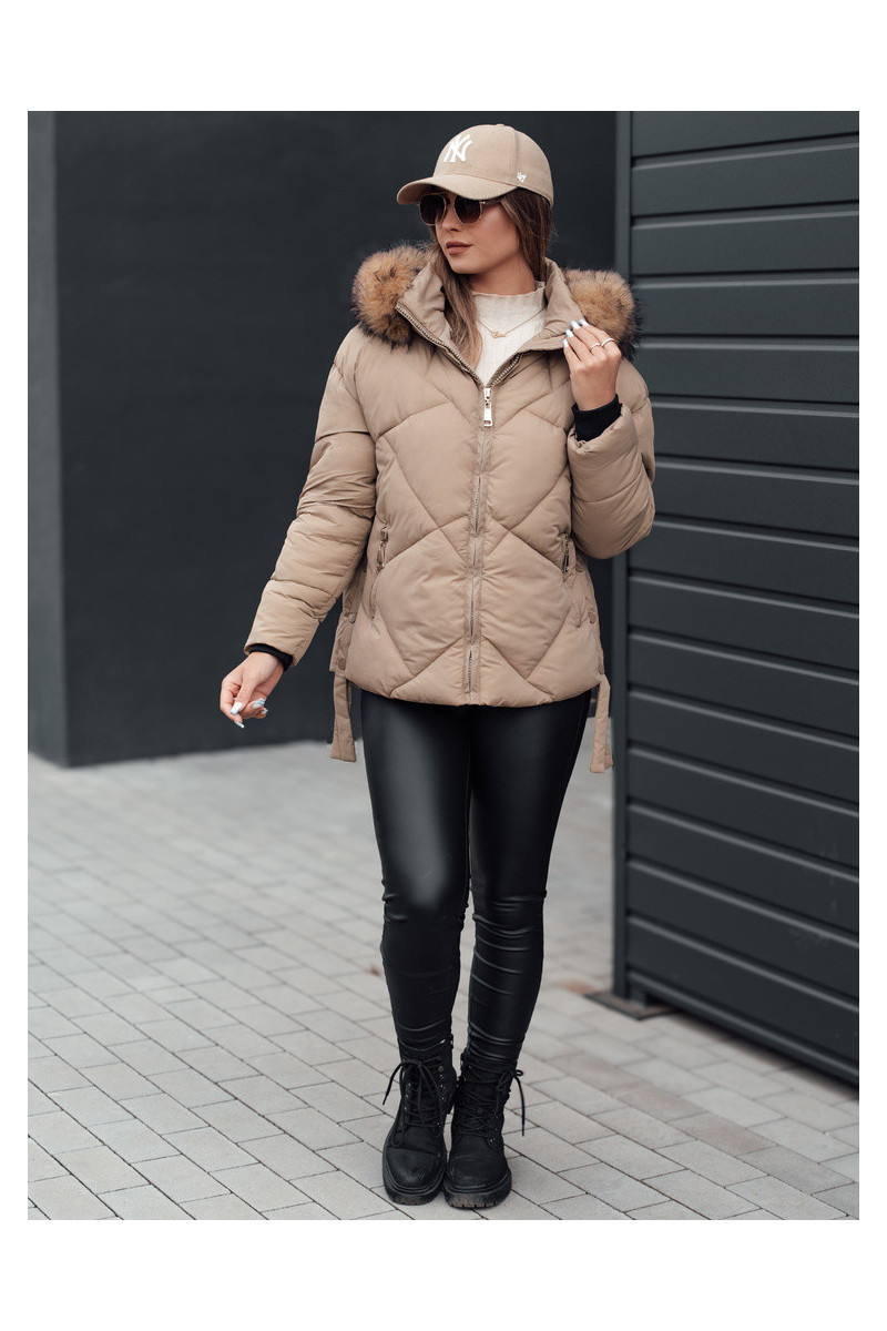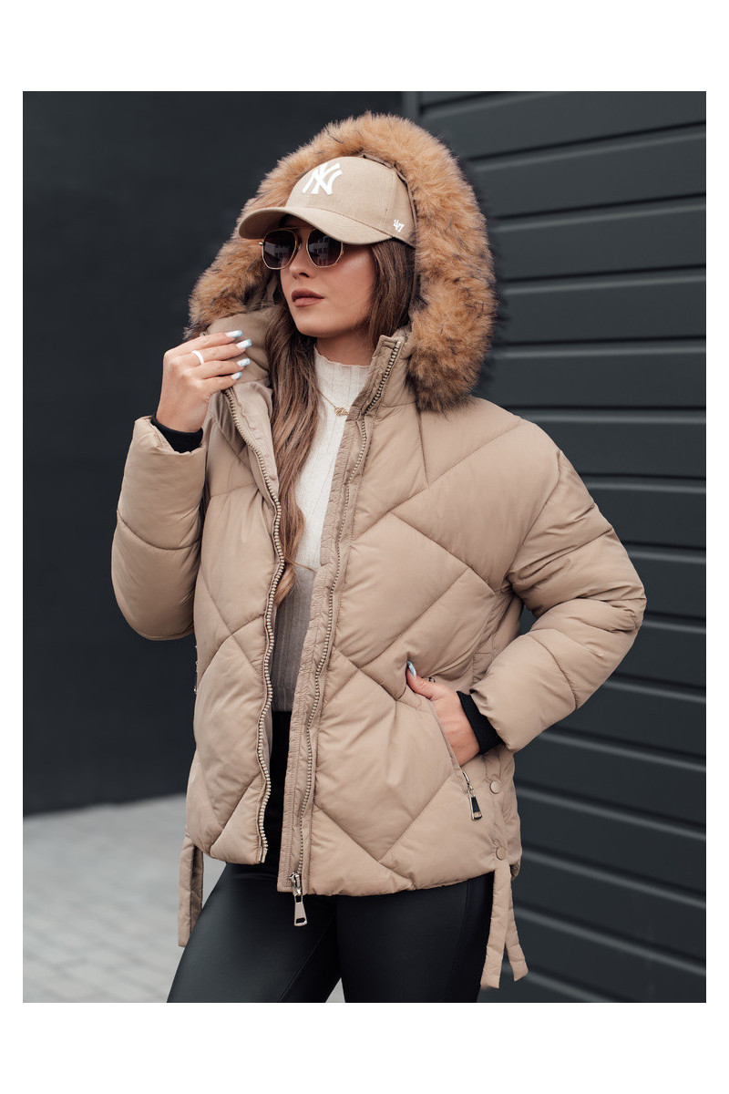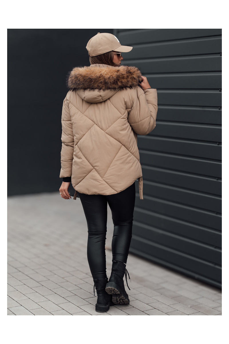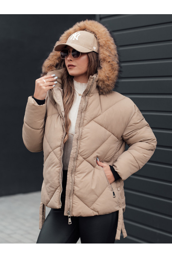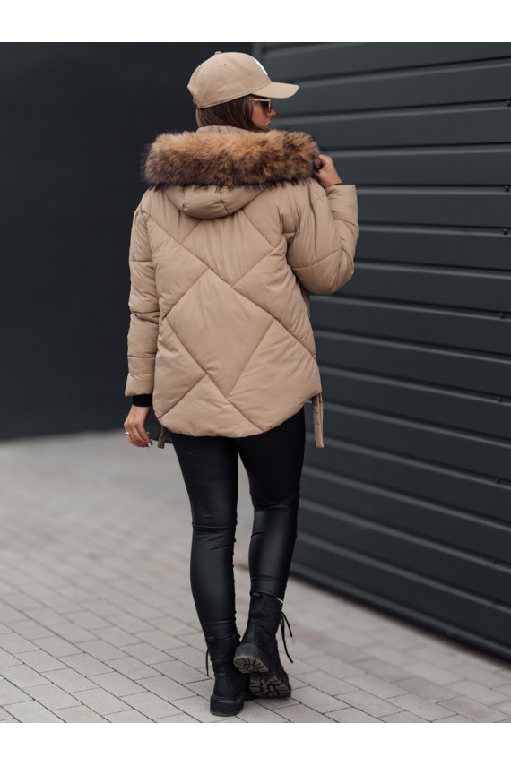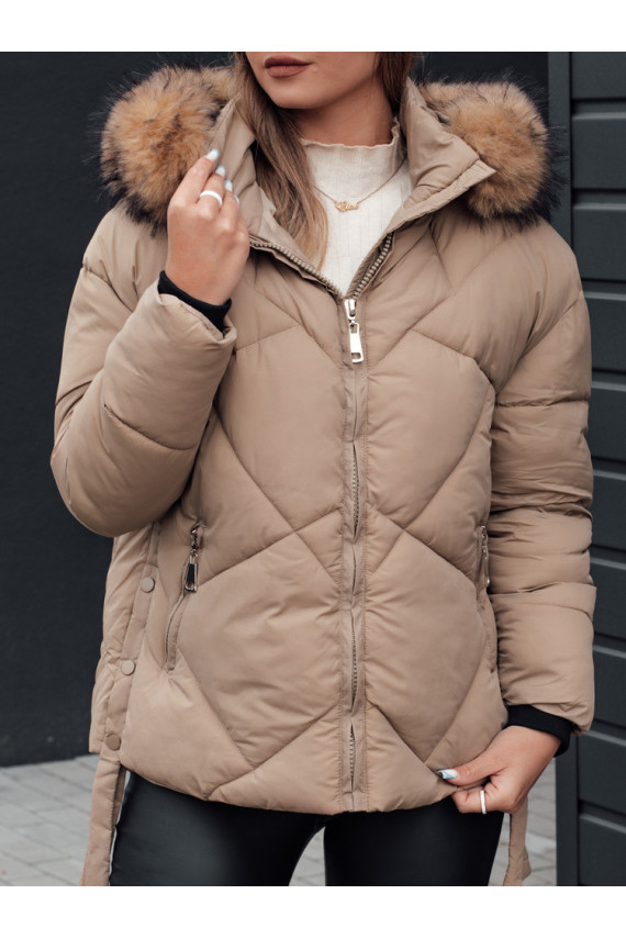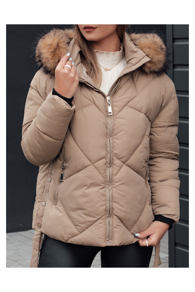 LESISI moteriška žieminė striukė, dygsniuota, su gobtuvu, smėlio spalvos Dstreet
