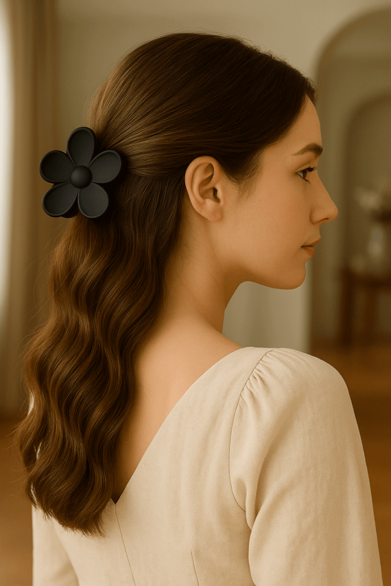 Decorated hair clip Dimensions: 7 x 7,5 cm Weight: 24g Material: - nickel and chromium free. Avoid contact with water.