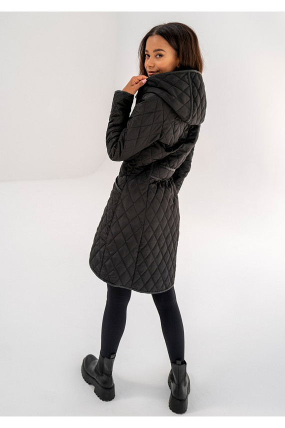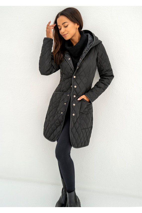 Black snap buttoned tight fit midi coat