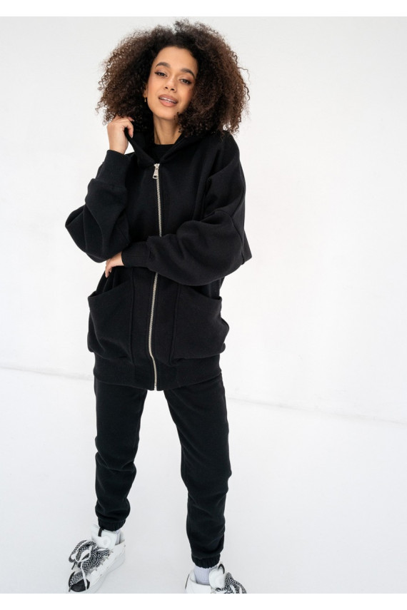 Amala - Black oversize zipped hoodie