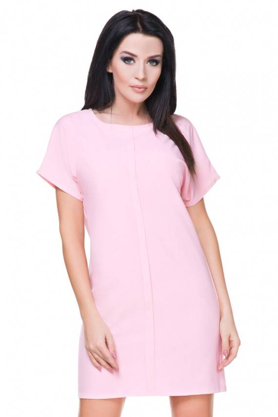 rausva-suknele-su-trumpomis-rankovemis-is-tessita