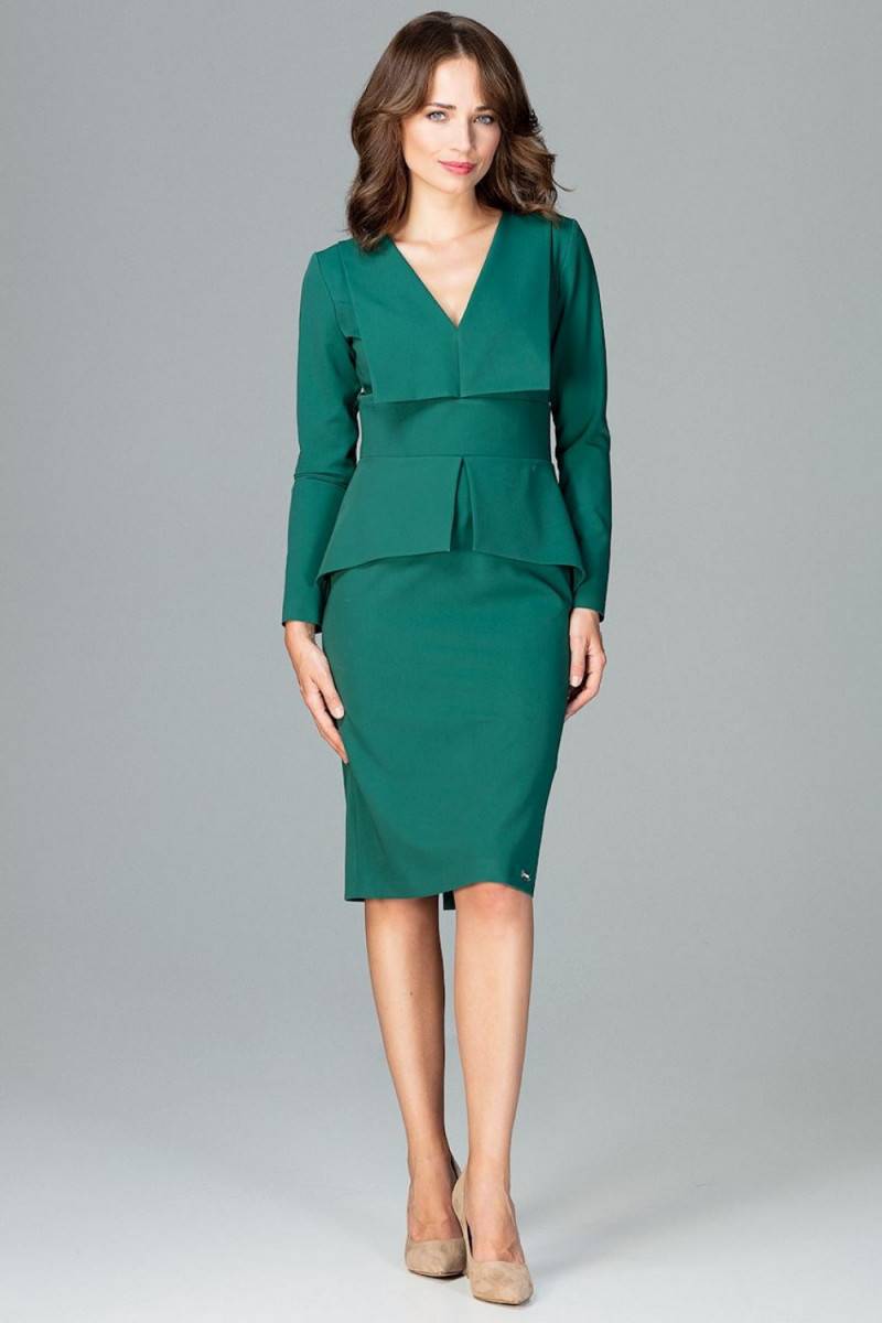 Tamsiai žalios spalvos išskirtinio modelio suknelė iš Lenitif