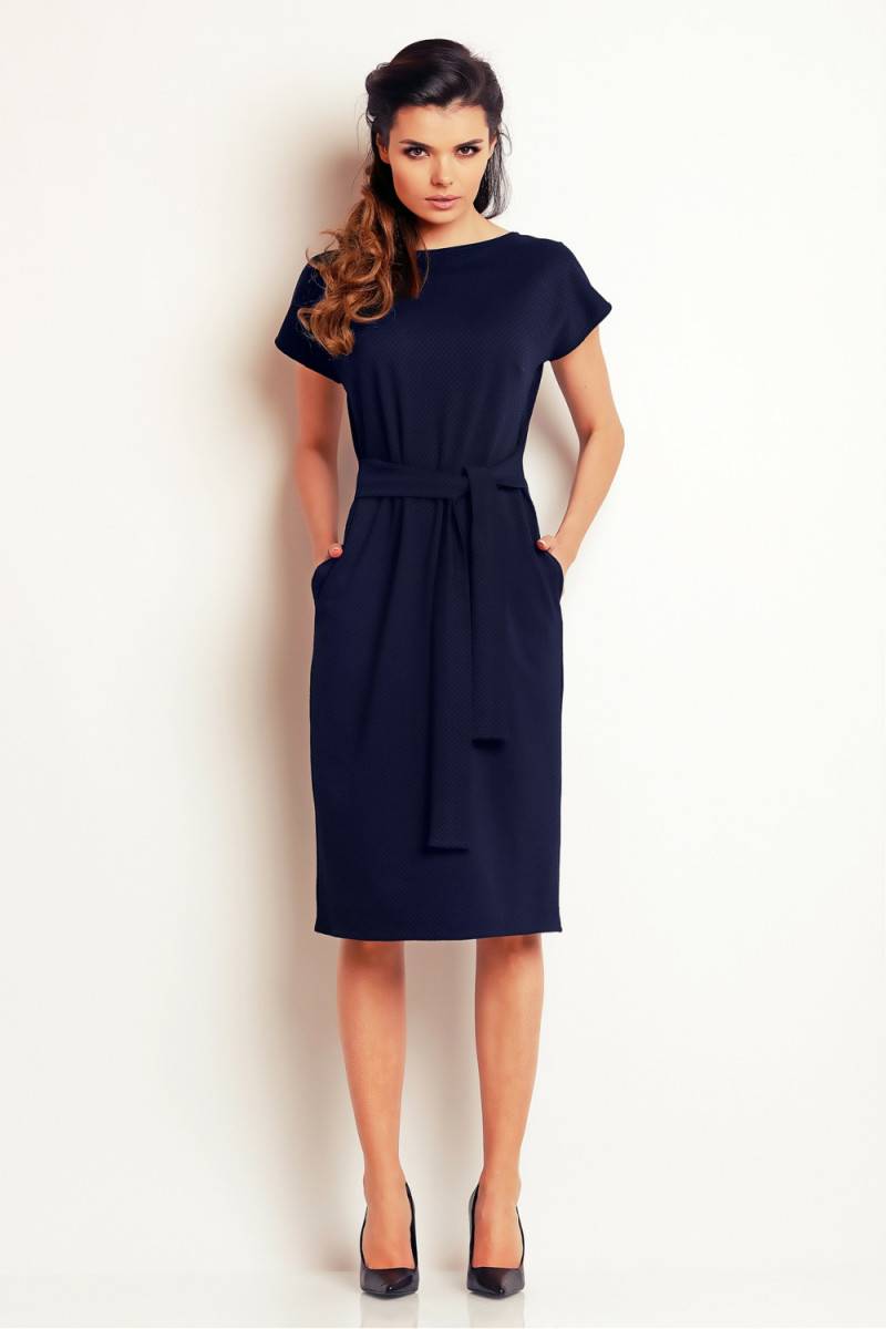 Tamsiai mėlynos spalvos suknelė su dirželiu awama