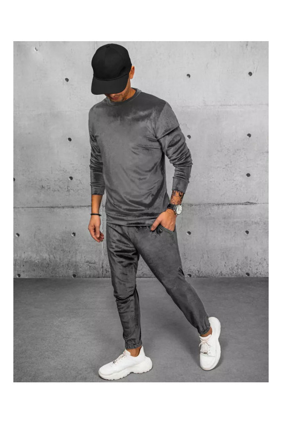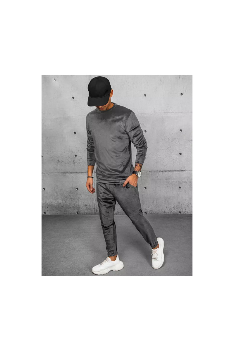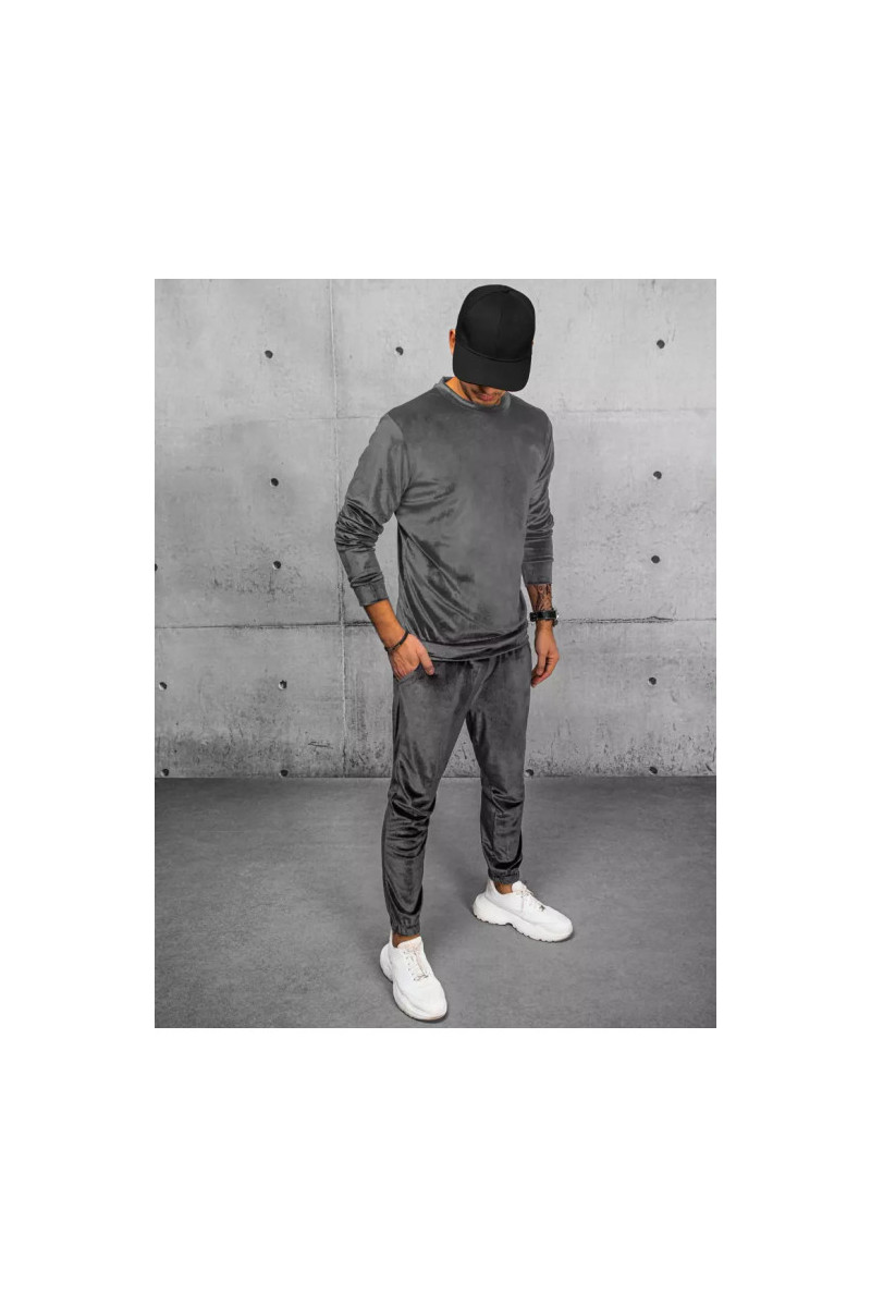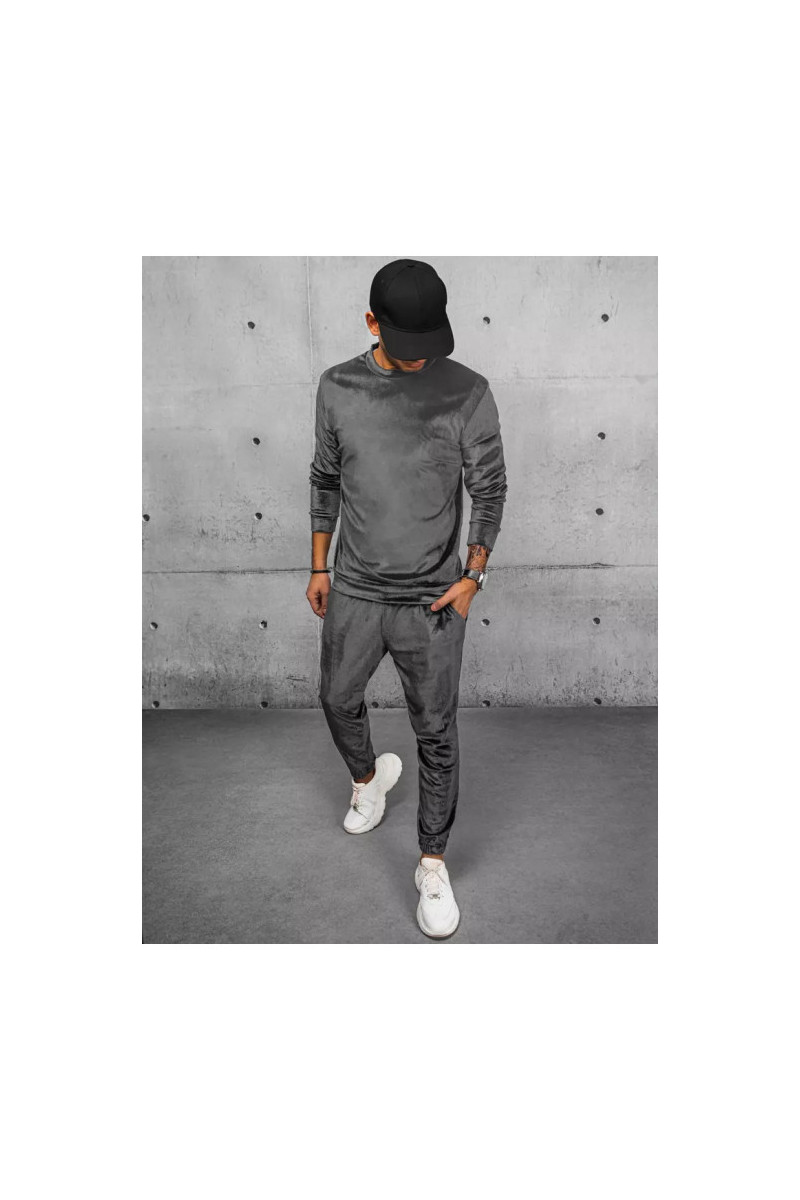 Vyriškas pilkos spalvos veliūrinis sportinis kostiumas
