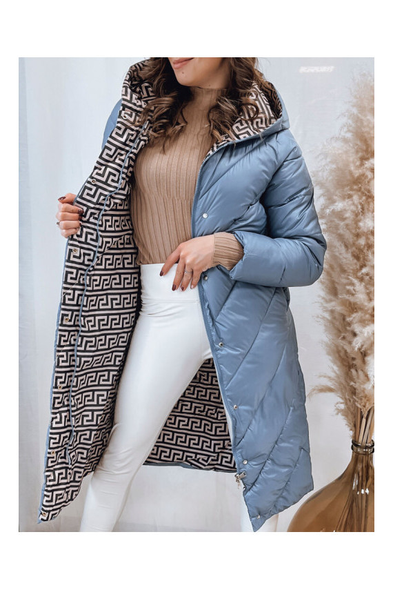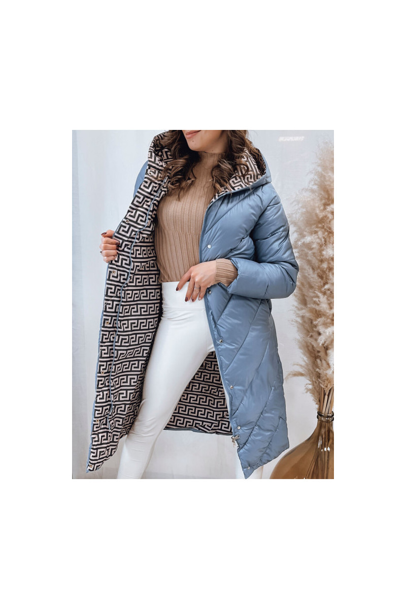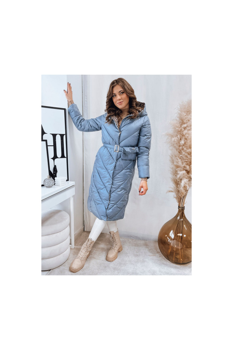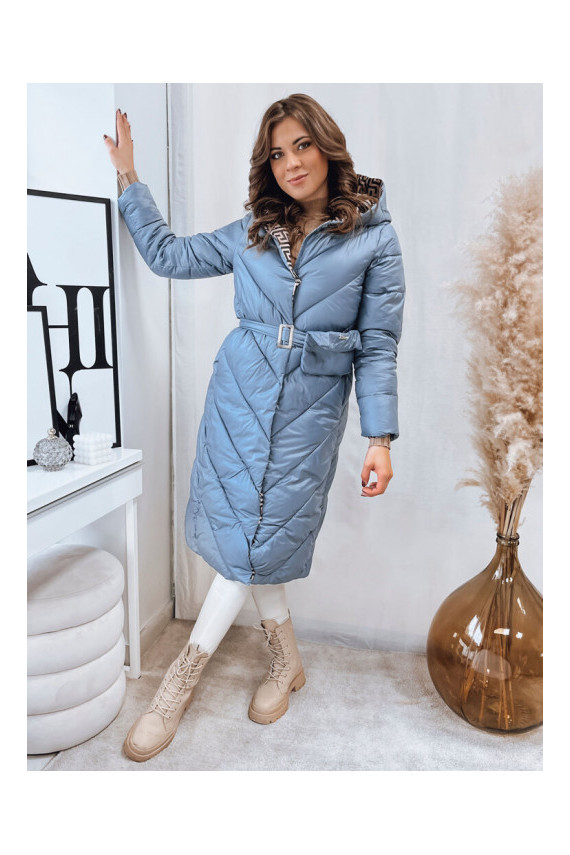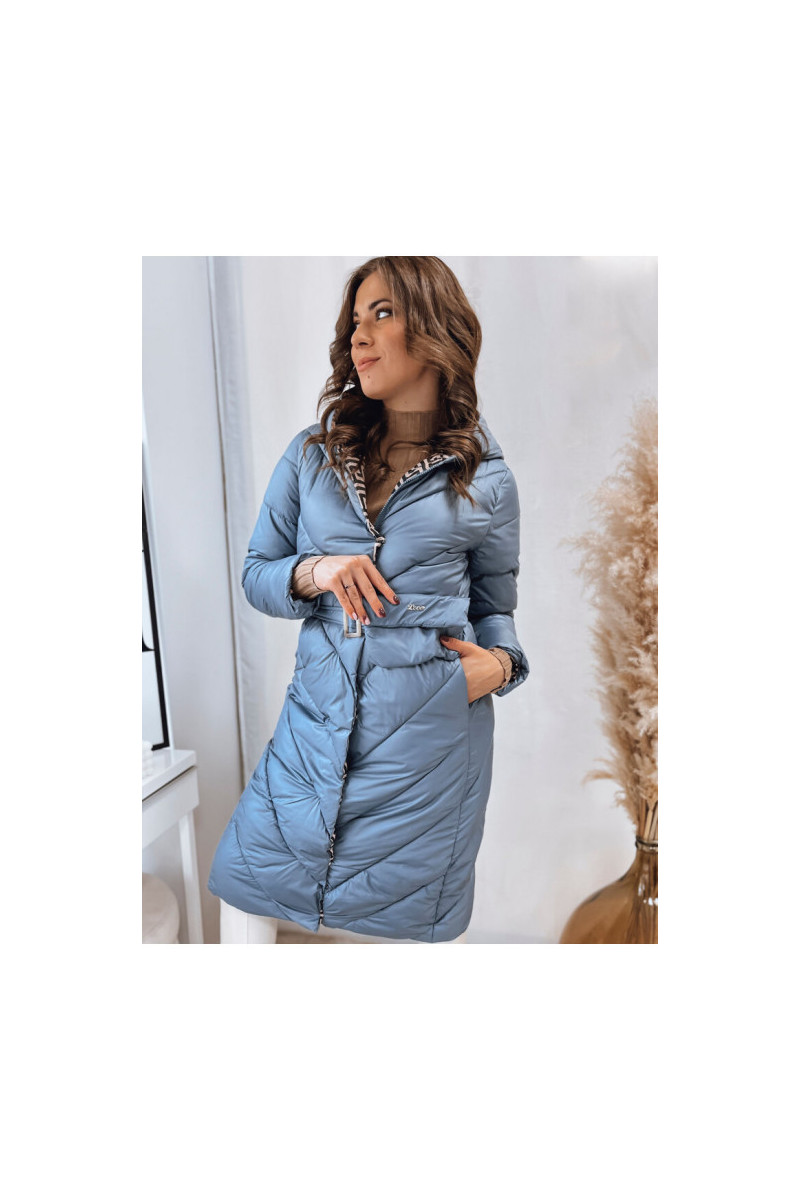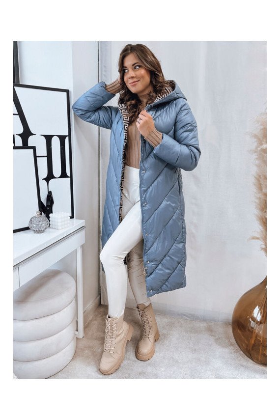 Moteriškas dygsniuotas žieminis paltas mėlynas CELESTIE