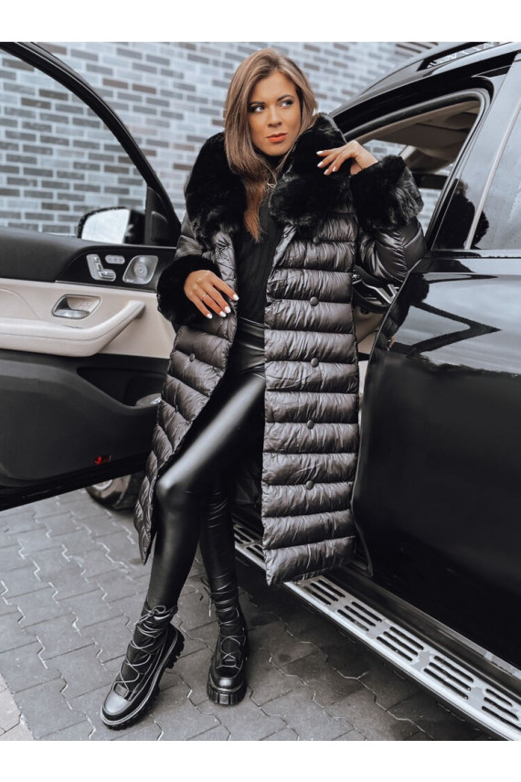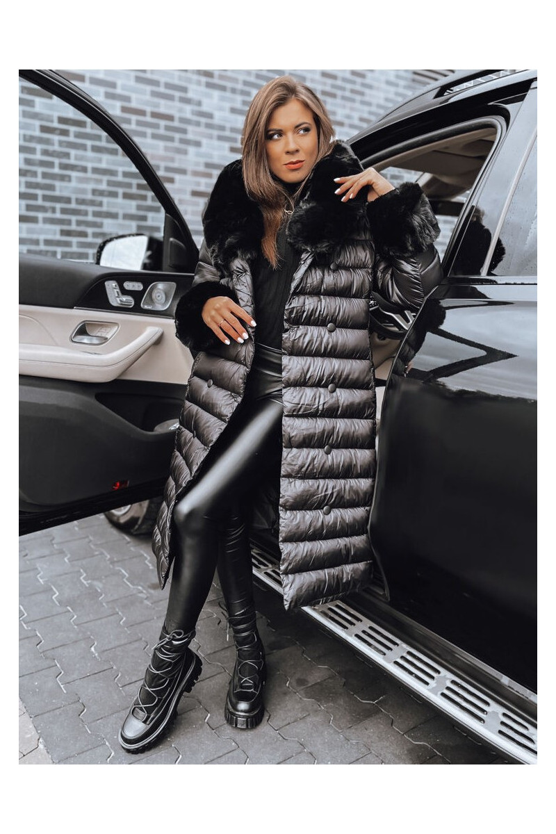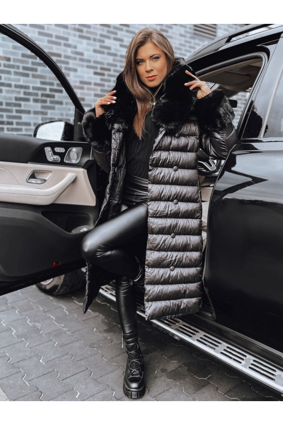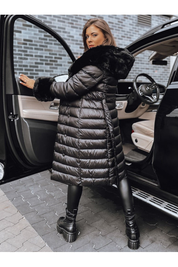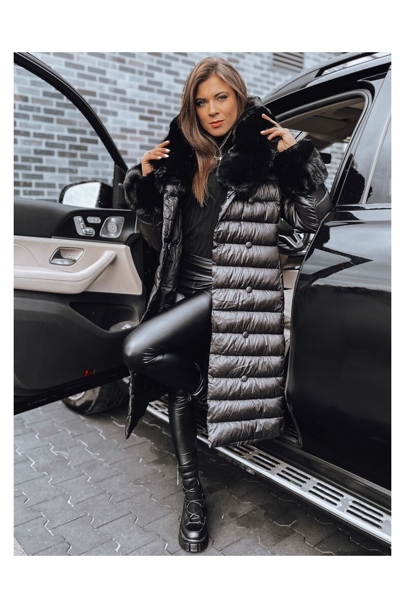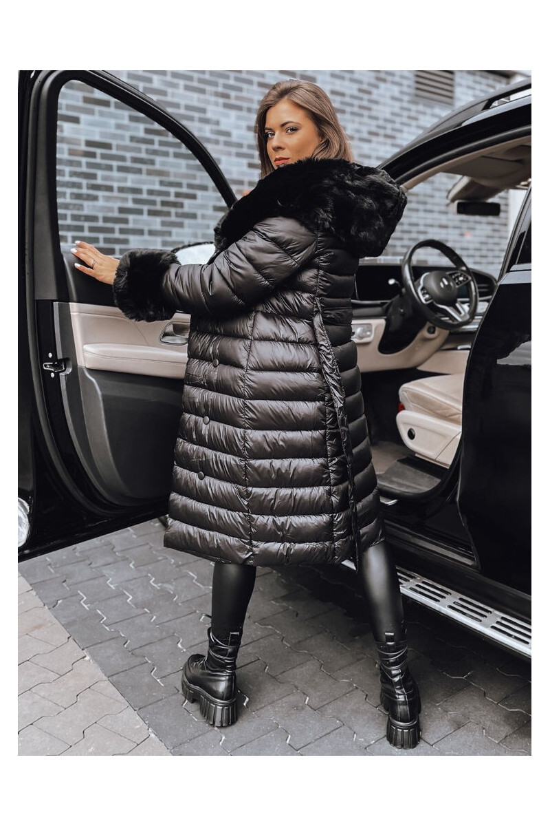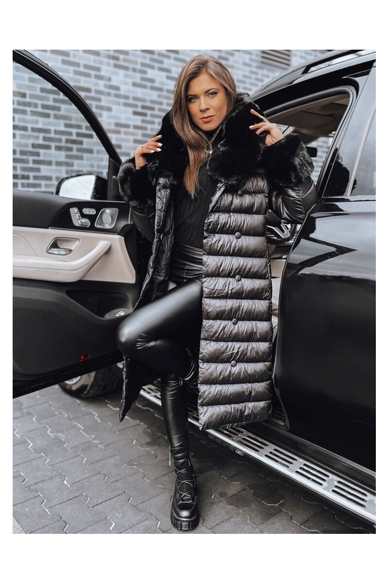 Moteriškas dygsniuotas žieminis paltas juodos spalvos HORIZON