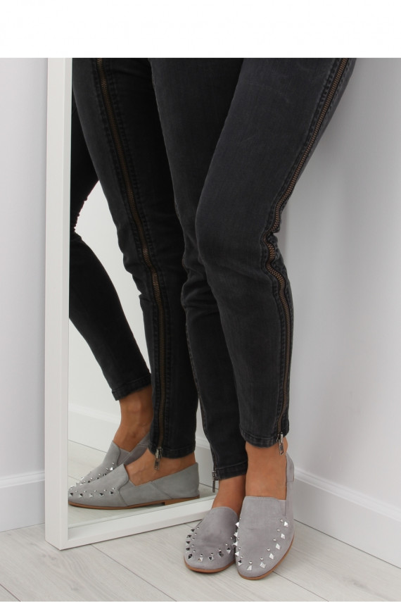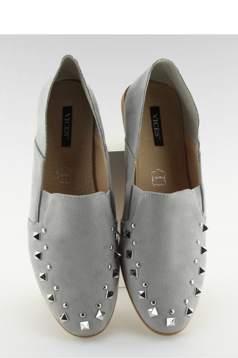 Pilkos spalvos mokasinai su sidabrinėmis detalėmis iš Inello