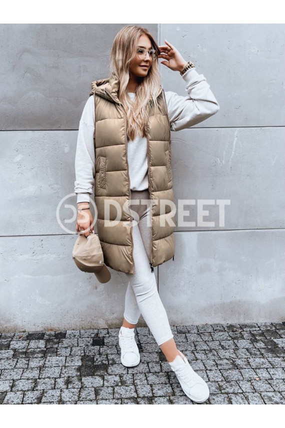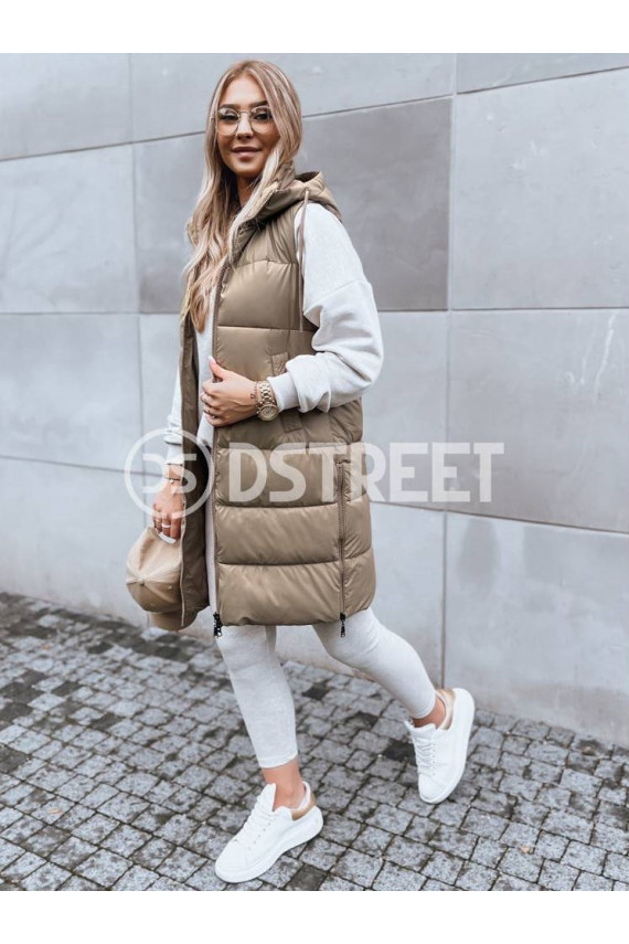 Rudos spalvos dygsniuota moteriška ilga liemenė