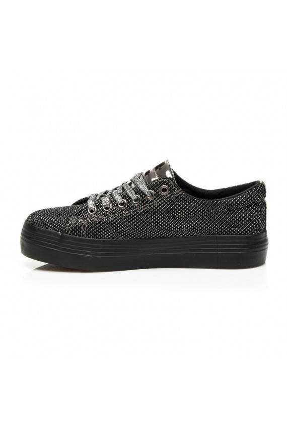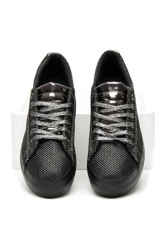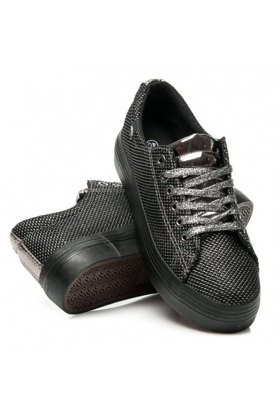 Išskirtiniai blizgantys juodai sidabriški storapadžiai batai AB-37S