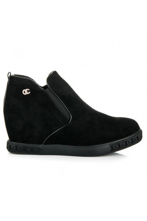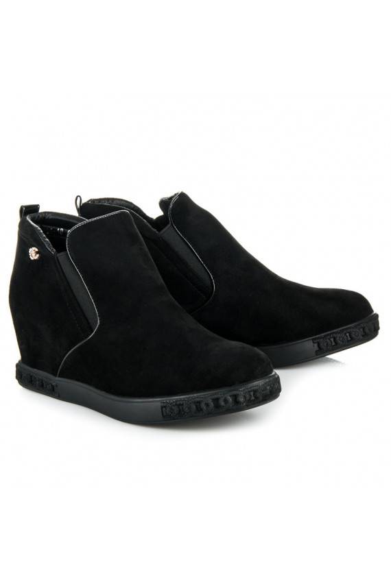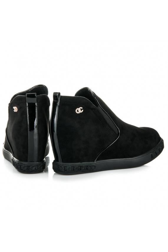 Suede Black Slip On Shoes With Hidden Platform 1236-18B
