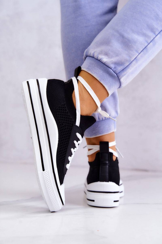 Sneakers made of flexible, breathable textile material. Slip-on model with an additional tie. Soft, textile lining inside. Irregular upper with an ankle opening and ribbing at the top. The shoes have a round, rubber-reinforced toe cap. They are mounted on a flat sole with delicate grooves, which is additionally non-slip. This model fits the foot perfectly and provides comfort for long wear. When choosing a size, please use the size chart.