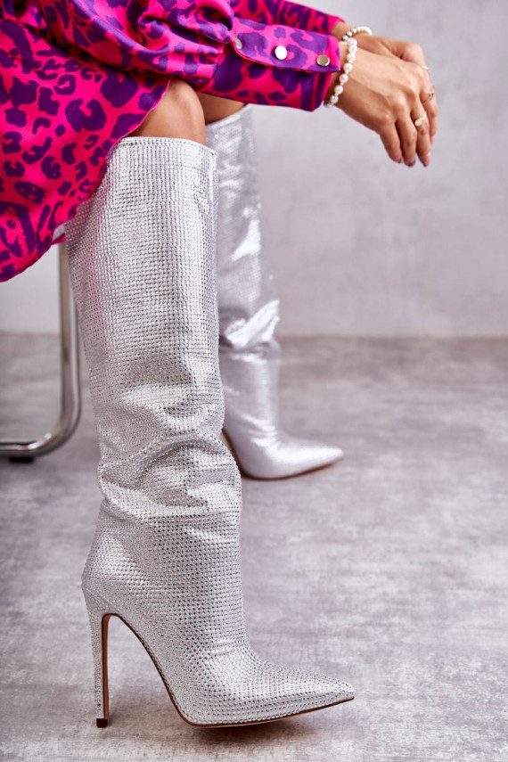 Amazing boots for women who like to stand out from the crowd! They were made of material. Decorations in the form of rhinestones imitating zircons are located on the entire upper. Boots were mounted on a heel in the form of a stiletto. Insulated inside with a nice-to-touch footwear blanket. The stiffened heel counter ensures proper foot stabilization. When choosing a size, please use the size chart.