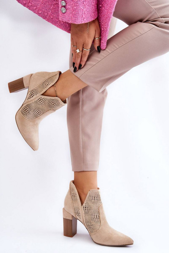 Wonderful, openwork boots with a fashionable heel in the form of a post, made of soft eco suede. The boots have a partial decoration in the form of an openwork pattern. Classic slip-on model. The soft and comfortable insole is made of eco leather. This great model will work in many styles! When choosing a size, please refer to the size chart.