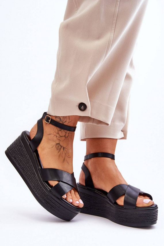 Perfect sandals for hot days! This model was mounted on a wedge and platform. Sandals are fastened with an adjustable strap with a buckle. The soft insole made of eco leather will ensure comfortable use even throughout the day. This model should be in your wardrobe! When choosing a size, please refer to the size chart.