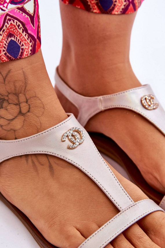 Classic sandals made of eco leather are perfect for the summer season! This model fastens with an adjustable strap with a buckle. The sandals were set on a flat heel and a non-slip sole. In addition, they were decorated with a plastic element and rhinestones on the front. When choosing a size, please refer to the size chart.