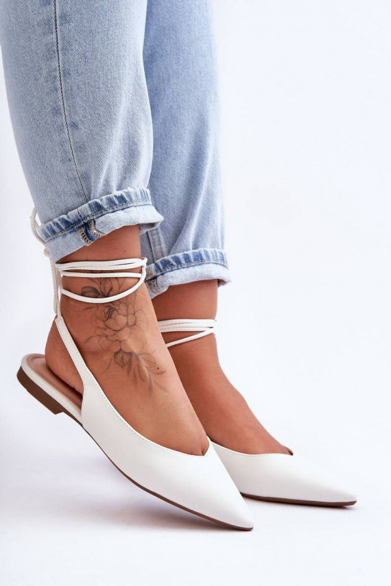 Stylish women's ballerinas have an open heel and a pointed toe. They are made of eco leather. The ballerinas have lacing around the calf. Soft, eco leather insole will provide comfort during use. Ballerinas have a flat heel and an anti-slip sole. Great model for warmer days! When choosing a size, please refer to the size chart.