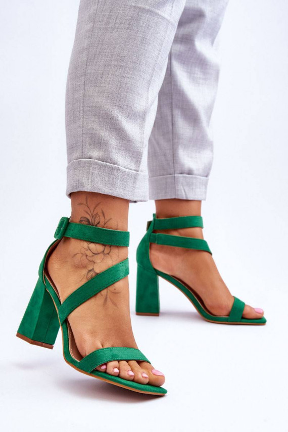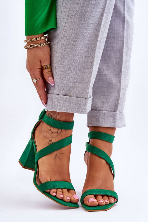 Fashionable women's heeled sandals in the form of a post. de of eco suede with an additional stripe passing through the middle of the footwear. Fastened around the ankle with an adjustable strap with a buckle. The insole made of eco leather is soft and comfortable to use. These shoes are perfect for hot days during a date, celebration or important meeting. When choosing a size, please refer to the size chart.