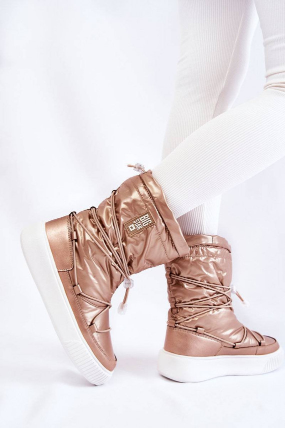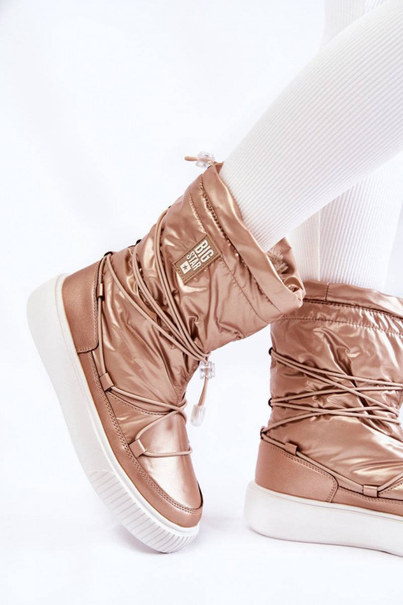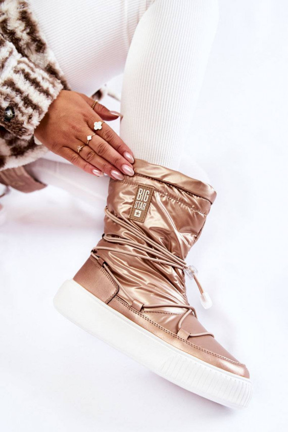 Unique, women's snow boots are made of high-quality materials. They have a pleasant to the touch insulation in the form of fur. Additionally, the snow boots have a welt. Embedded on a massive platform. The Big Star logo is on the side of the upper. They can be properly adjusted to the leg width thanks to the welt at the top of the upper. The insert is made of material. These shoes have a stiffened heel. When choosing a size, please use the size chart.