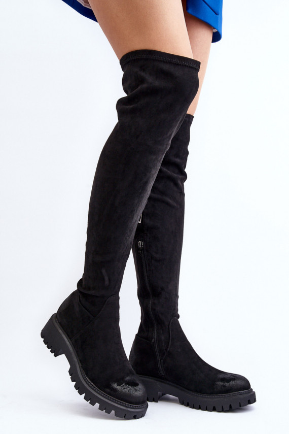 Women's over-the-knee boots. Made of eco suede. Set on a flat, stable heel. Rounded toes. Stiffened heel cap. Lightly lined only at the foot height with fur. Perfect for skirts and dresses! You definitely should have them! When choosing a size, please refer to the size chart.