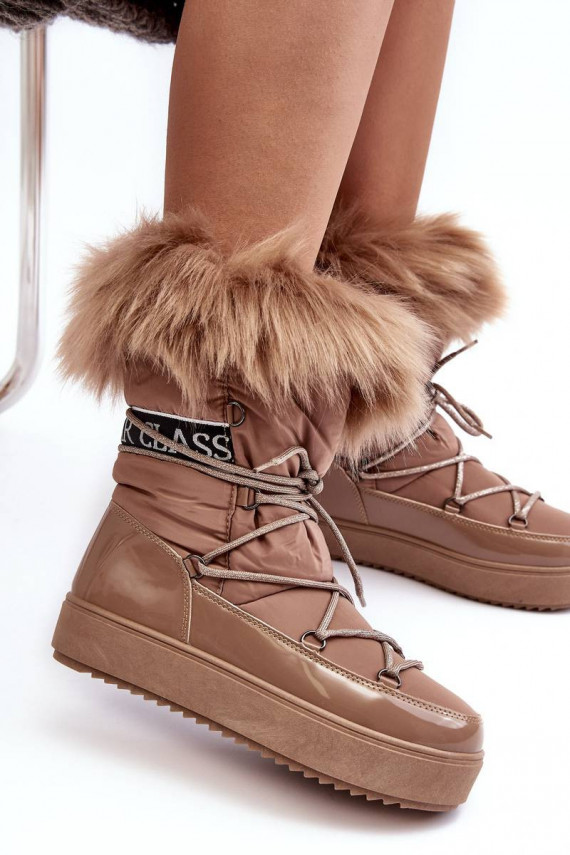 Fashionable snow boots are made of a material that is resistant to cold and wind. The upper is finished with artificial fur. Classic laced model. Snow boots are mounted on a massive platform. They have insulation in the form of thick fur. Decorated with a ribbon with an imprint. Extremely warm and stylish at the same time. You should have them! When choosing a size, please use the size chart.