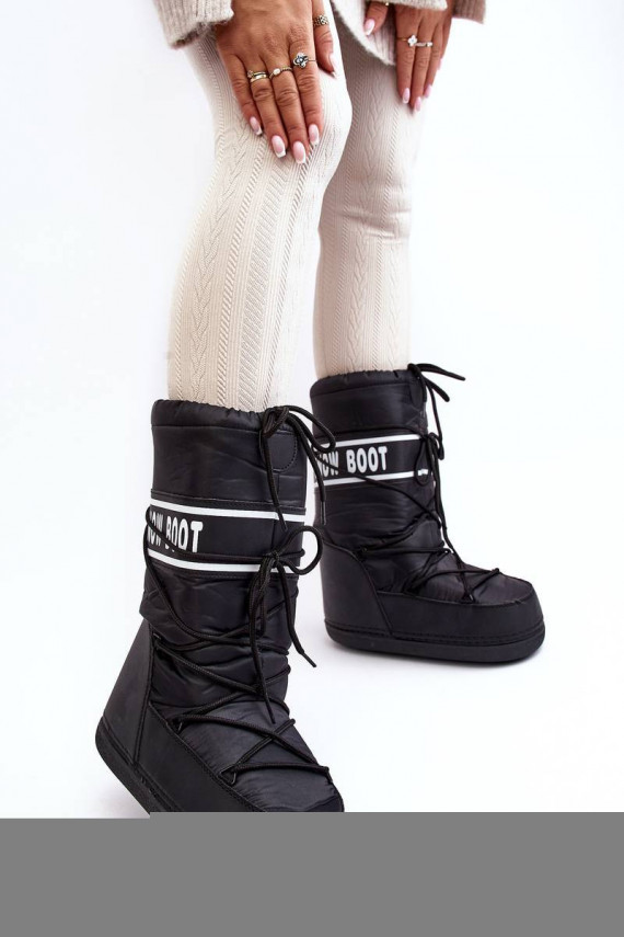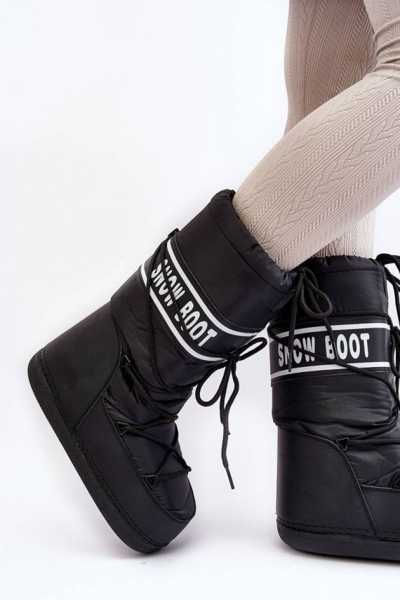 Incredibly warm and comfortable, these women's snow boots are made from cold and wind-resistant materials. The upper with eco-leather and decorative lettering will add a touch of style to your autumn-winter look. The snow boots are slip-on and have additional lacing at the front and top of the upper. This model is set on a massive platform. Inside, they have insulation in the form of foam and a shoe blanket. These snow boots are the perfect model for colder days! When choosing a size, please refer to the size chart.