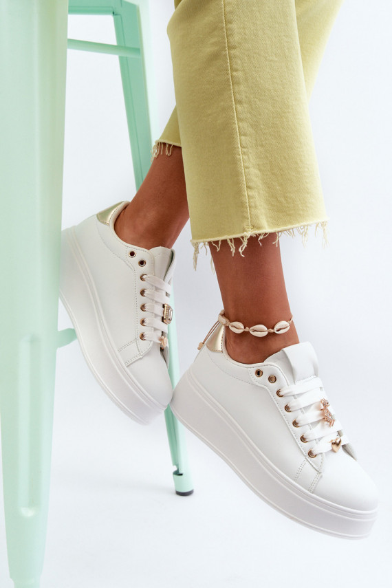 Women's Platform Sneakers With Eco Leather Pins, White Cavisa