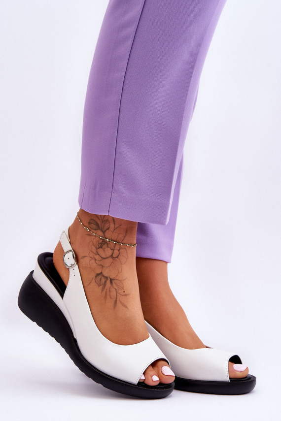 Classic women's sandals are made of high-quality eco leather. This model has a classic buckle fastening with an adjustable strap. The soft insole will ensure your comfort during use. The sandals were set on a wedge heel and a platform. A comfortable model for the spring-summer season! When choosing a size, please refer to the size chart.