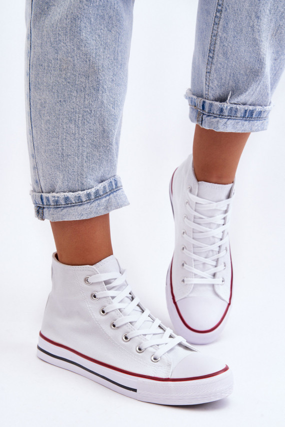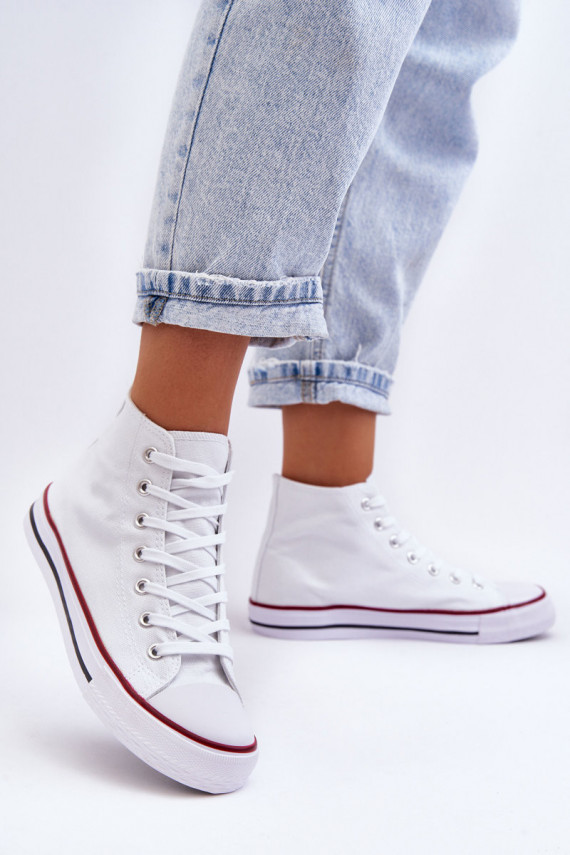 Timeless, classic women's ankle sneakers have been made of textile material. They have a sole that is additionally anti-slip and classic lacing. The tip has been reinforced with rubber material. The comfortable, fabric insole will provide comfort during use. When choosing a size, please refer to the size chart.