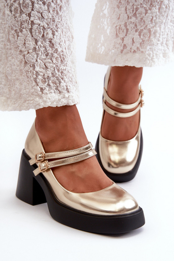 Eco leather wide heel shoes in gold...
