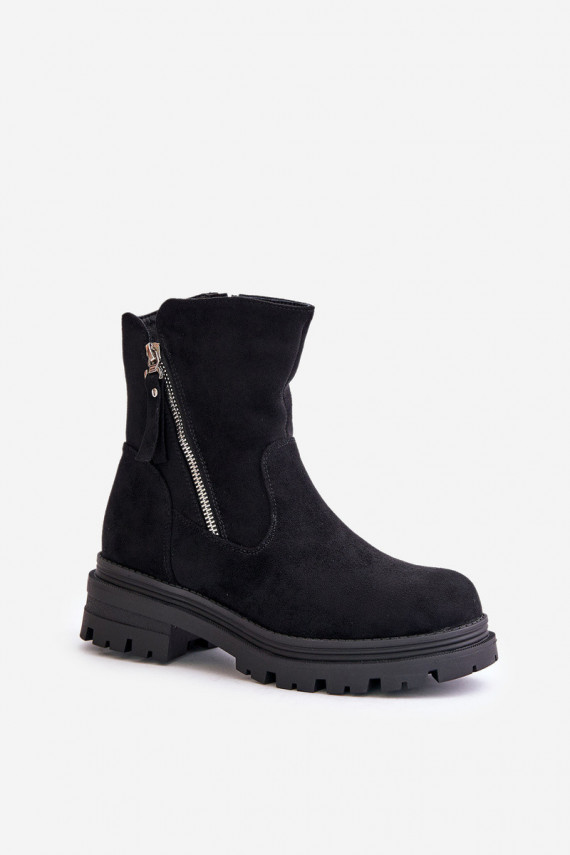 Women's ankle boots made of eco-friendly suede leather are the perfect solution for cooler days. The model is set on a flat heel and platform, providing comfort and stability. Round toes give them a subtle look, and the interior lined with soft shoe fleece ensures warmth. They fasten with a zipper, making it easy to put on and take off. A stylish and practical choice for the autumn-winter season! When choosing a size, please refer to the size chart.