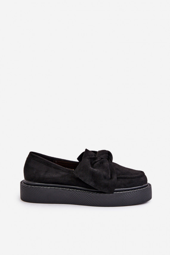 Women's moccasins made of eco suede. Set on a platform. At the front of the shoe is a charming bow that adds delicacy and a unique character. Perfect for everyday wear, combining comfort with a trendy look. When choosing a size, please refer to the size chart.