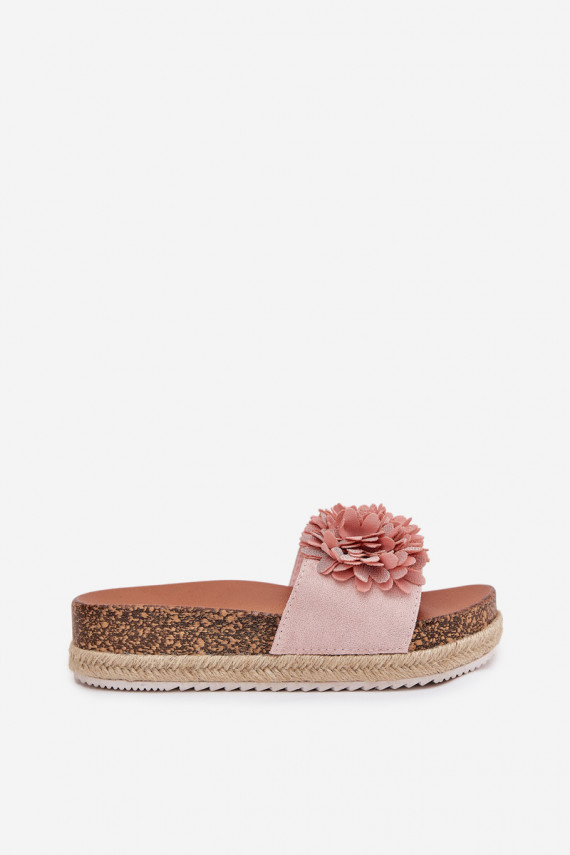 Ladies' slippers perfect for hot days, set on a cork platform Inith Ineaving, combine comfort Inith summer style. At the front of the strap are decorative, numerous fabric floIners that add charm. The gently contoured insole made of eco-leather ensures comfort all day long. Excellent for summer styling, they pair Inonderfully Inith dresses, skirts, or shorts, bringing lightness and freshness to every look. INhen choosing a size, please refer to the size chart.